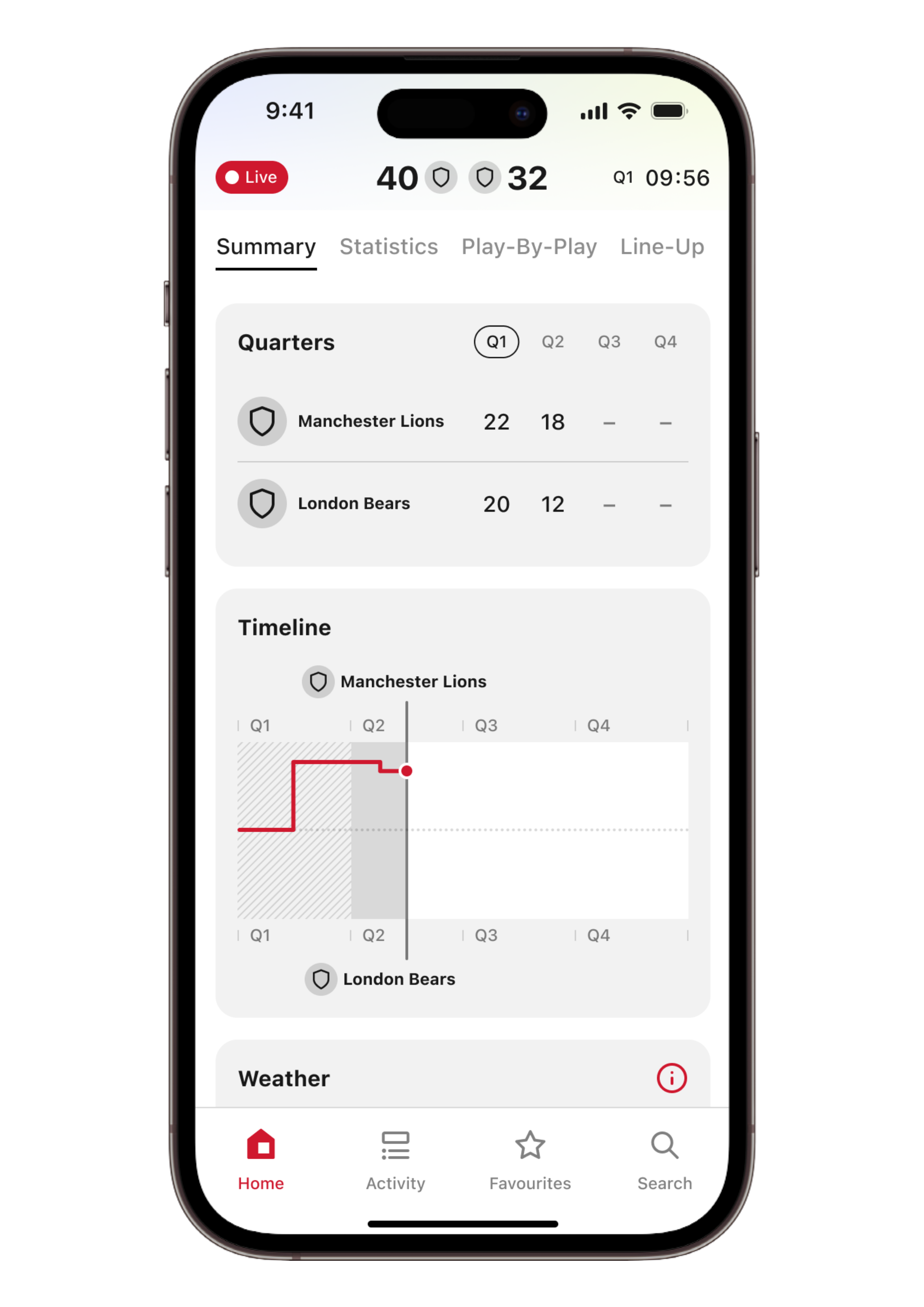 Can’t make the game? No problem. Live game scores and statistics will be streamed straight from the venue through to the HoopsHQ app, so you never miss any real-time events.